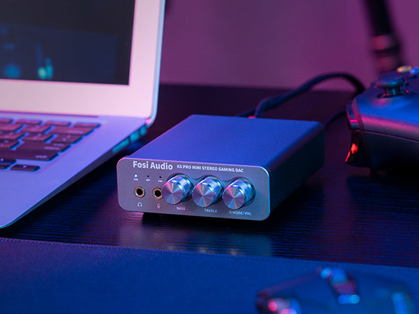 - The upgraded version for Fosi Audio Q4 adds microphone function, K5 Pro headphone DAC amp combo, next-generation audio converter with unrivaled internals, more outstanding performance, and richer audio details. Born for Gaming. K5 Pro stereo DAC headphone amplifier is perfect for your home gaming system, equivalent to an external sound card, suitable for PS5/Computers/PC/MAC/Nintendo Switch/active speakers, etc;