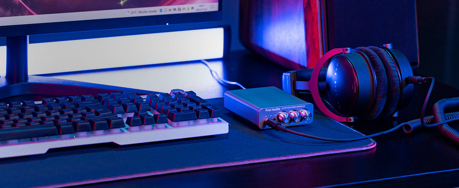 - The upgraded version for Fosi Audio Q4 adds microphone function, K5 Pro headphone DAC amp combo, next-generation audio converter with unrivaled internals, more outstanding performance, and richer audio details. Born for Gaming. K5 Pro stereo DAC headphone amplifier is perfect for your home gaming system, equivalent to an external sound card, suitable for PS5/Computers/PC/MAC/Nintendo Switch/active speakers, etc;