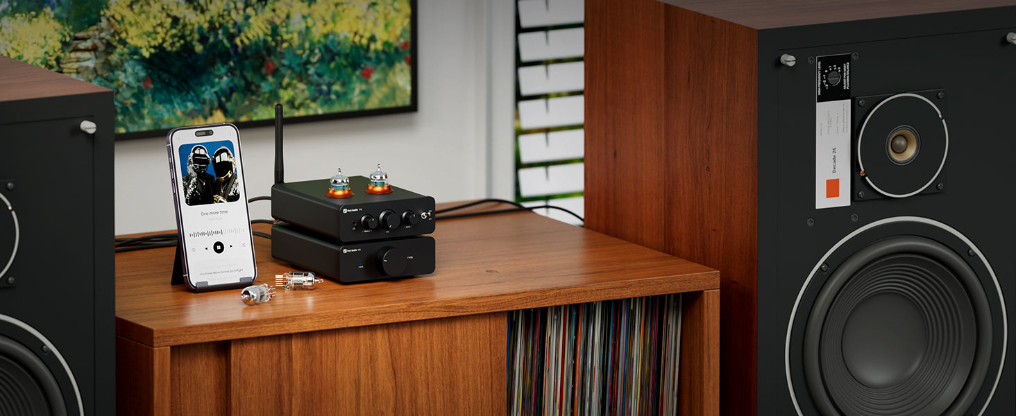 True Tube Amplification: The preamp circuit elevates the voltage to 54V, ensuring the tubes work to their full potential, delivering a warm and rich experience. The unique preamplification technology delivers pure audio signals, faithfully reproducing crisp high tones, full midrange richness, and deep, rhythmic bass.