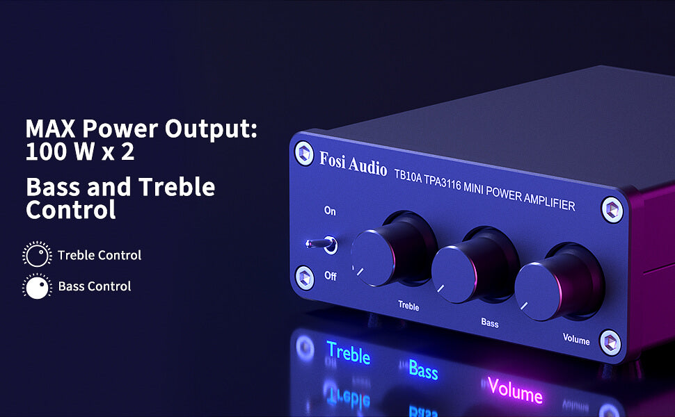 24V/4.5A Power SupplyUnlike other amplifiers come with a cheap 12V power supply. Fosi Audio TB10A equip with an energy-efficient and stable power supply which got authoritative certification by many security tests that can get an astonishing sound. |