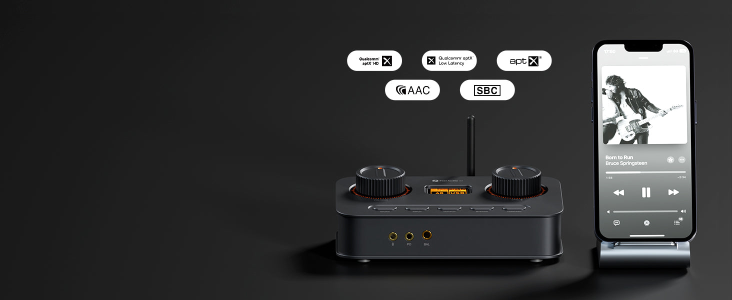 The K7 is an all-in-one HiFi DAC and headphone amplifier, developed based on in-depth interviews with hundreds of headphone HiFi and gaming enthusiasts. It supports mainstream digital inputs including USB, optical, and coaxial, and features aptX HD/LL for high-quality Bluetooth audio streaming.