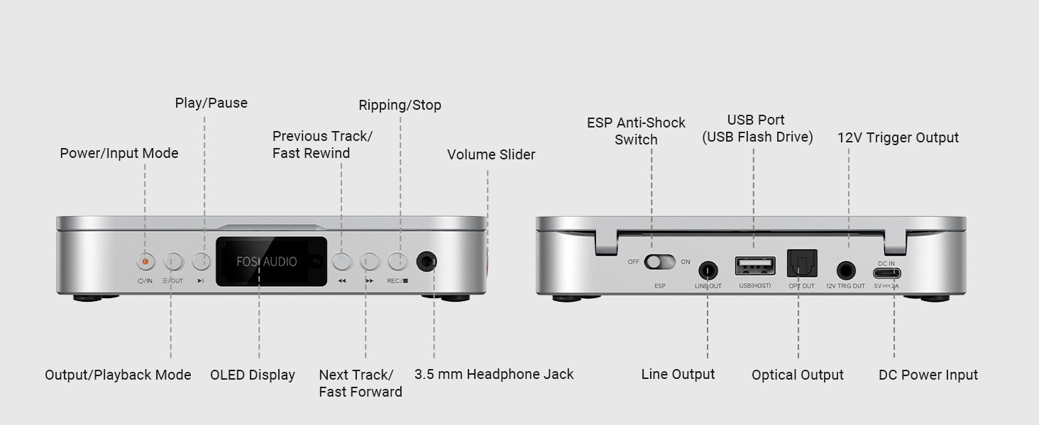 CD Ripping & USB Playback: Supports CD ripping to USB and direct playback, enabling easy conversion to digital files and convenient access without additional devices.